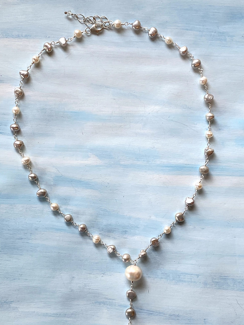 Pearl Wire chain with Shell Pearl and PC Pave Clover